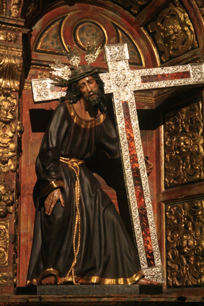 Hasta Dios encarnado en hombre. Siente de la cruz el peso. Se apoya para descansar. Sabiendo que sobre sus hombros lleva el peso de la humanidad.