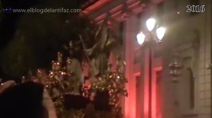 Transcurrir de los 2 pasos de la cofradía a su paso por la Avda. de la Constitución. Mientras que al paso de la Oración en el Huerto lo acompaña musicalmente la Agrupación Musical de la Redención, en el paso de palio de Mar´´ia Stma. del Rosario lo hace la Banda Municipal de la Puebla del Río.