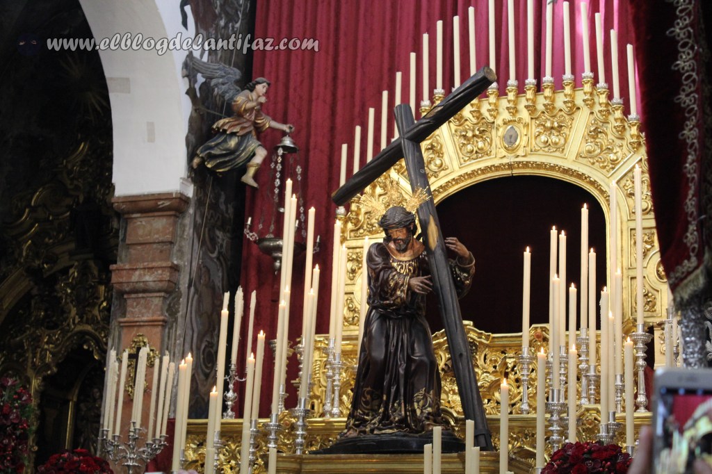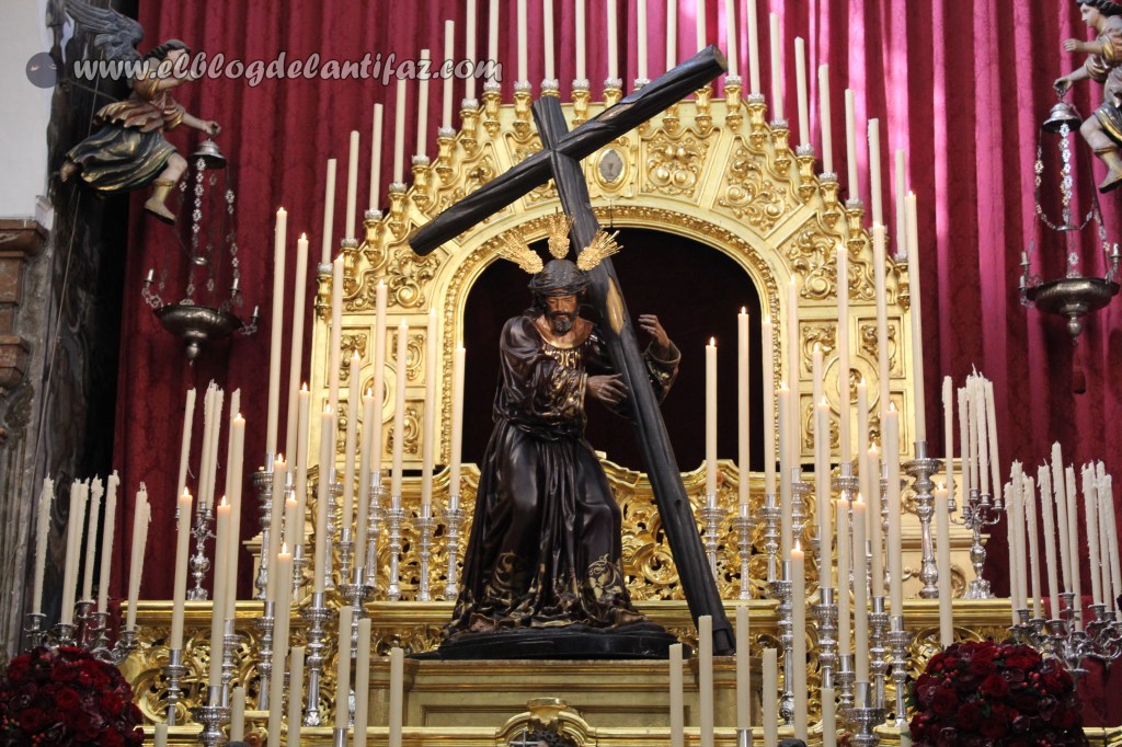 Los Sagrados Titulares de la cofradía presidieron sendos altares. En el altar mayor se situó un grandioso altar a modo de monumento eucarístico, rematado por el frontal del Monumento que habitualmente se monta en la capilla del Sagrario. La imagen del Señor de la Salud, se mostraba a los fieles portando de nuevo la cruz de cultos de forma invertida.