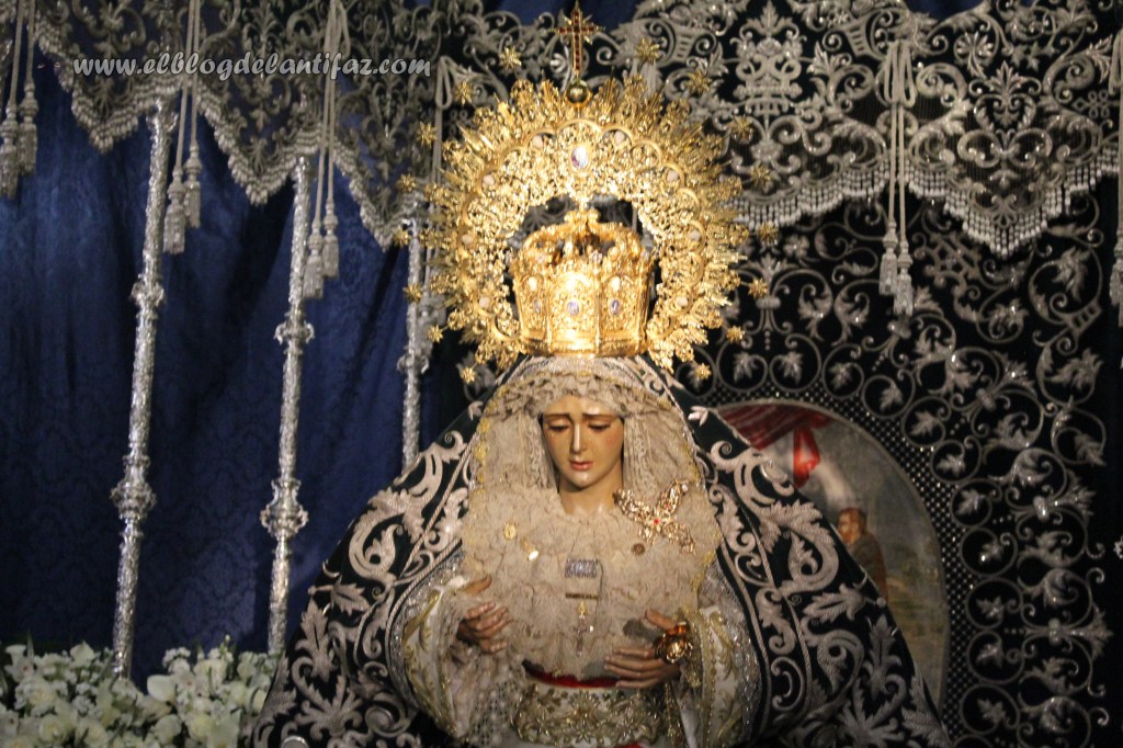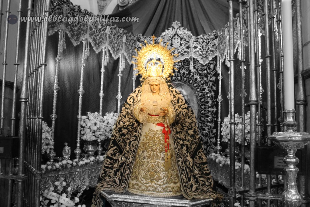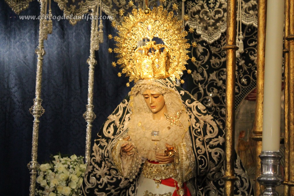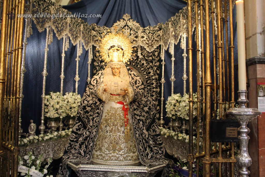 En la capilla del Sagrario y sobre la peana de salida se dispuso la imagen de María Santísima de la Candelaria, estando rodeada por elementos de su paso de palio: varales, bambalinas, jarras con flores junto a las palomas que rematan los varales, el templete con el relicario y la imagen pequeña de la Virgen del Subterráneo. Su techo de palio hizo de dosel, con la bambalina trasera rematándolo (la delantera se encontraba expuesta en la Exposición “In Nomine Dei”).