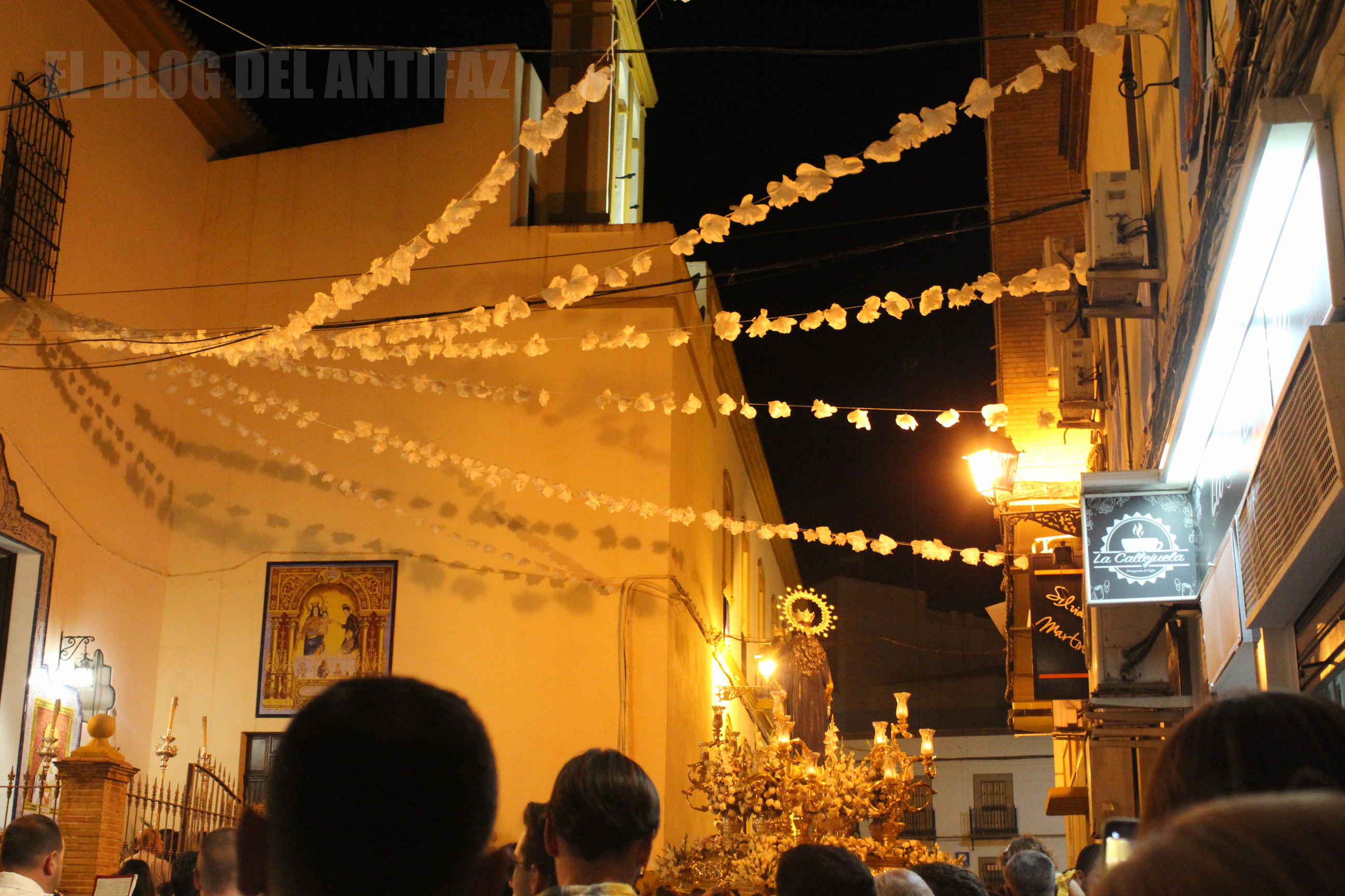 El pasado martes tuvo lugar la procesión de María Auxiliadora en Alcalá de Guadaíra. Además de la imagen mariana que portaba a al Niño Jesús, en el cortejo también pudimos ver los pasos de Domingo Savio y San Juan Bosco.