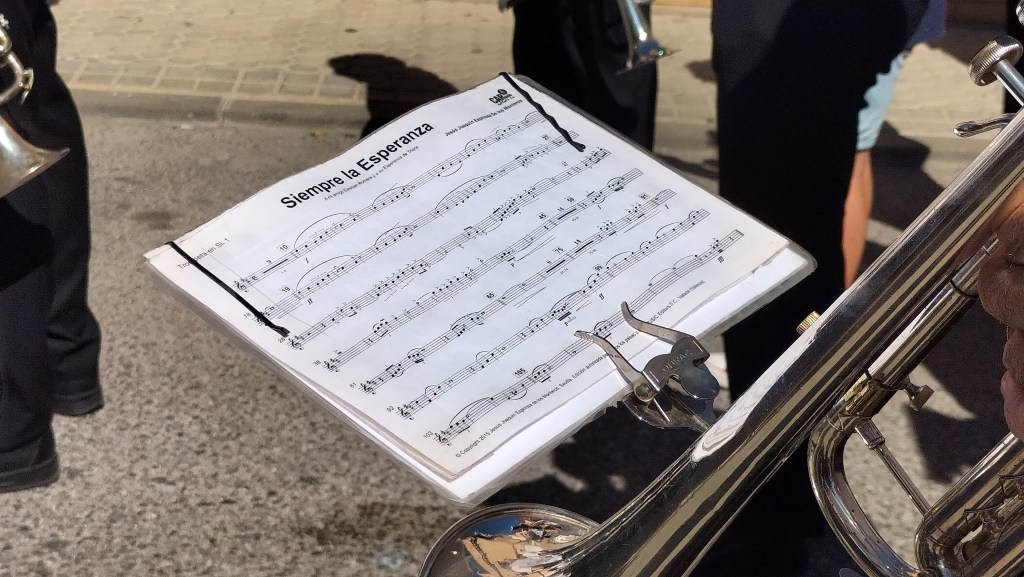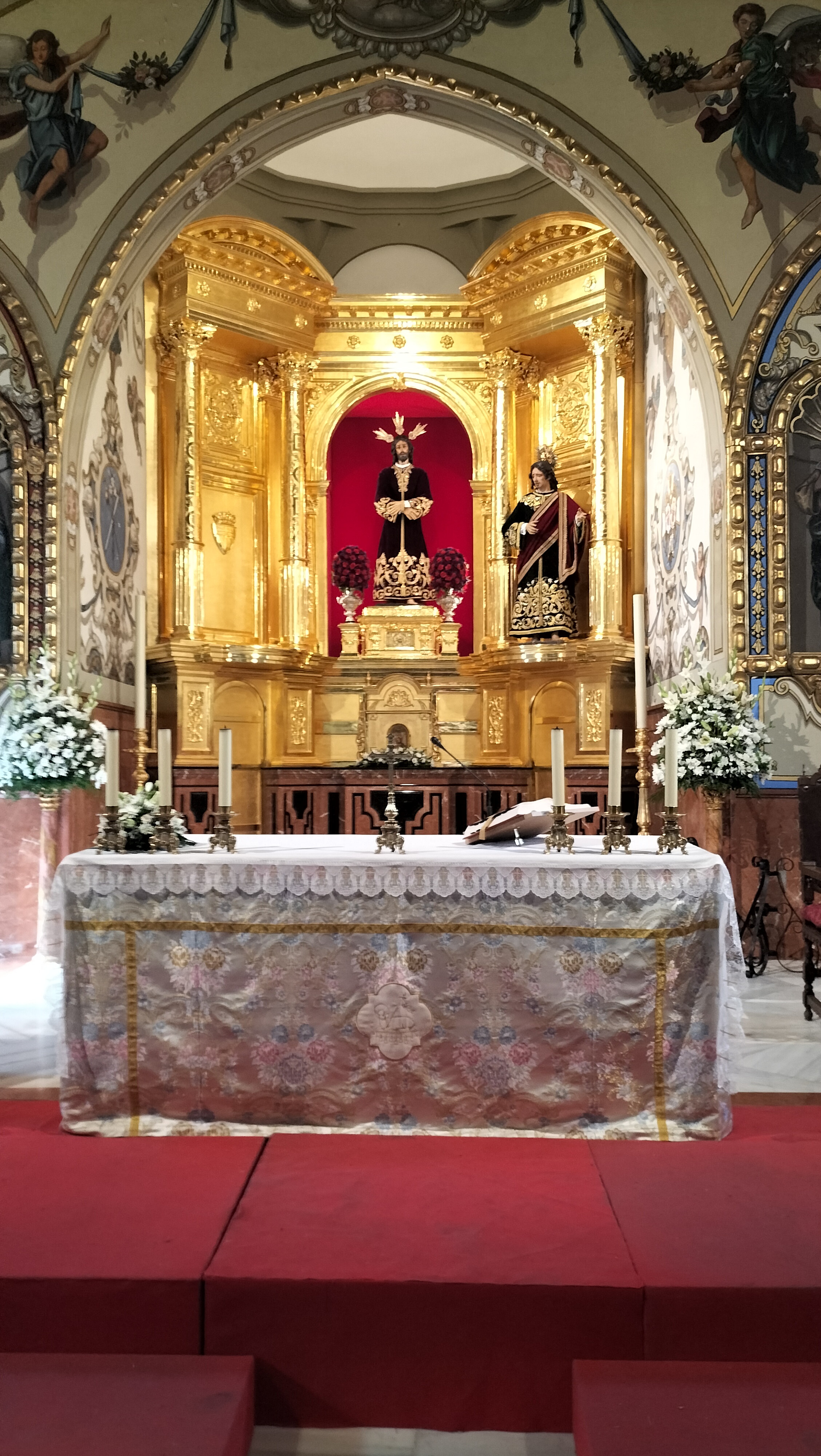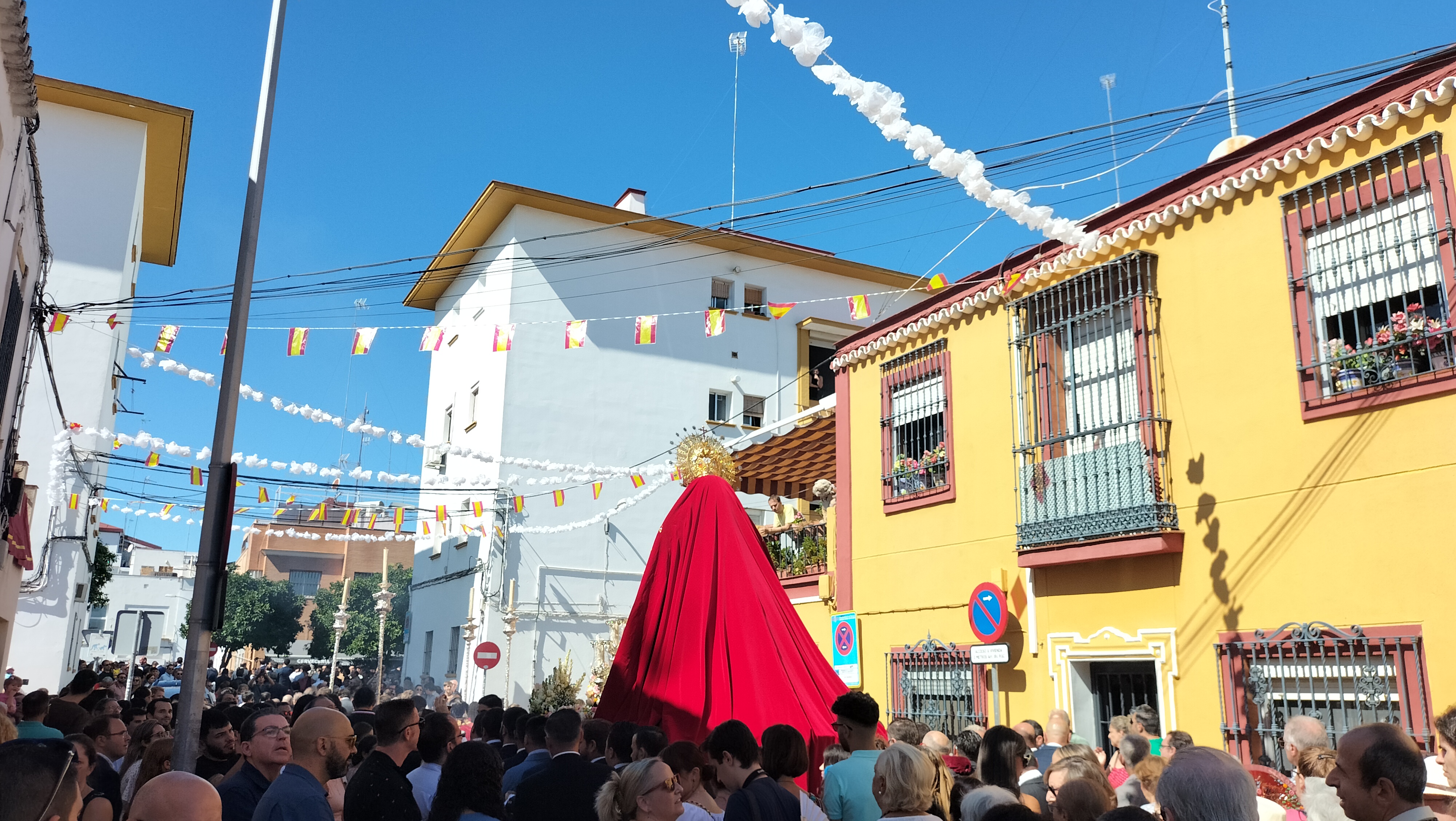 En el Colegio Virgen de las Mercedes se celebró la Eucaristía Y en el recorrido de vuelta a su templo, el acompañamiento musical corrió a cargo de la Banda de Música del Carmen de Salteras.