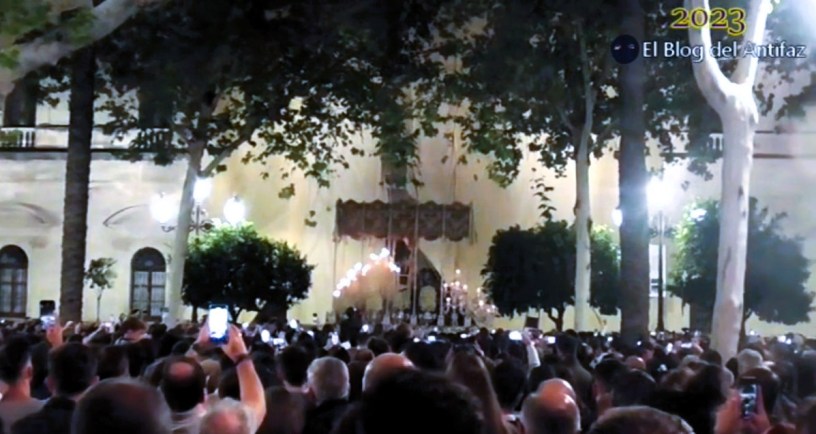 Tras su traslado a la SEO sevillana y la posterior ceremonia a presidida por el arzobispo de Sevilla, José Ángel Saiz Meneses, la dolorosa regresó hasta su santuario. Lo hizo en su paso de palio y acompañada musicalmente por la Banda de Música de las Nieves, pero hubo un tramo donde lo hizo con los sones de la Sección Musical de Los Gitanos. Aquí tienes algunos momentos vividos en la Plaza Nueva.