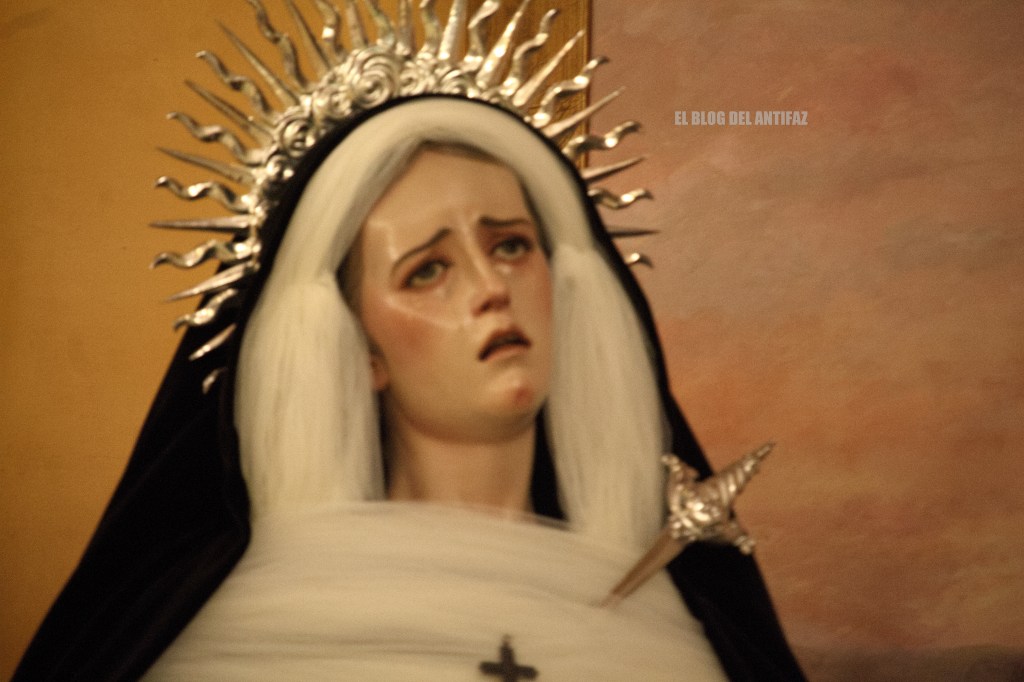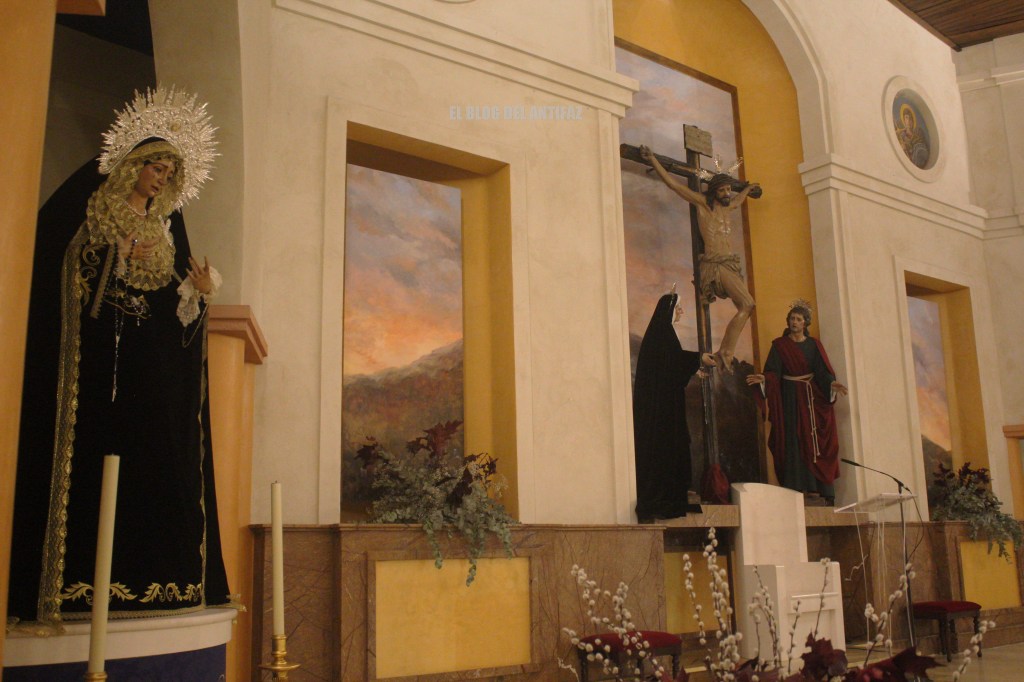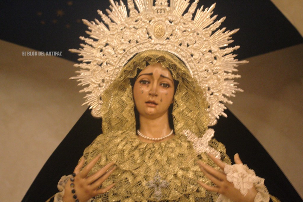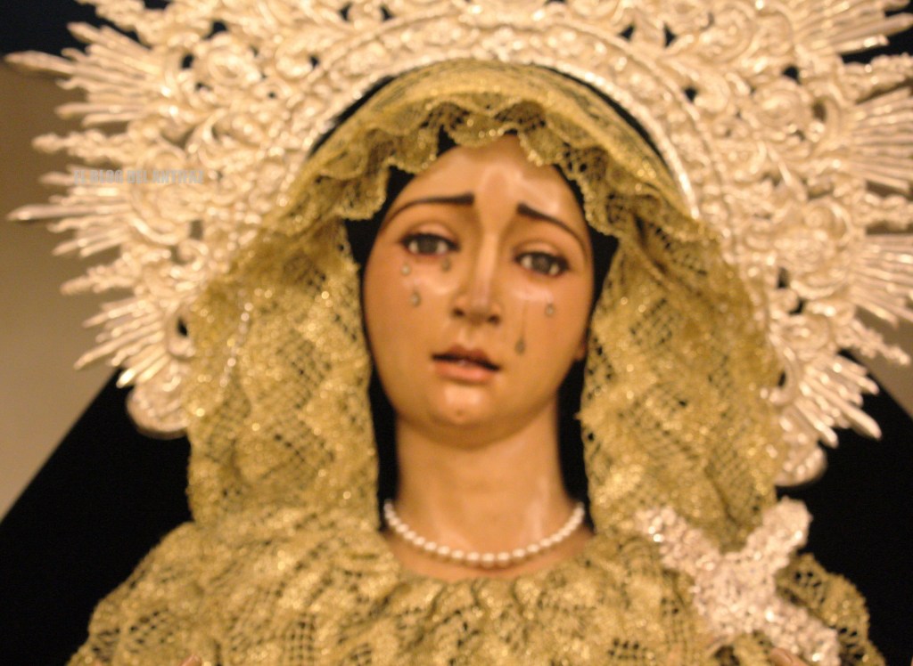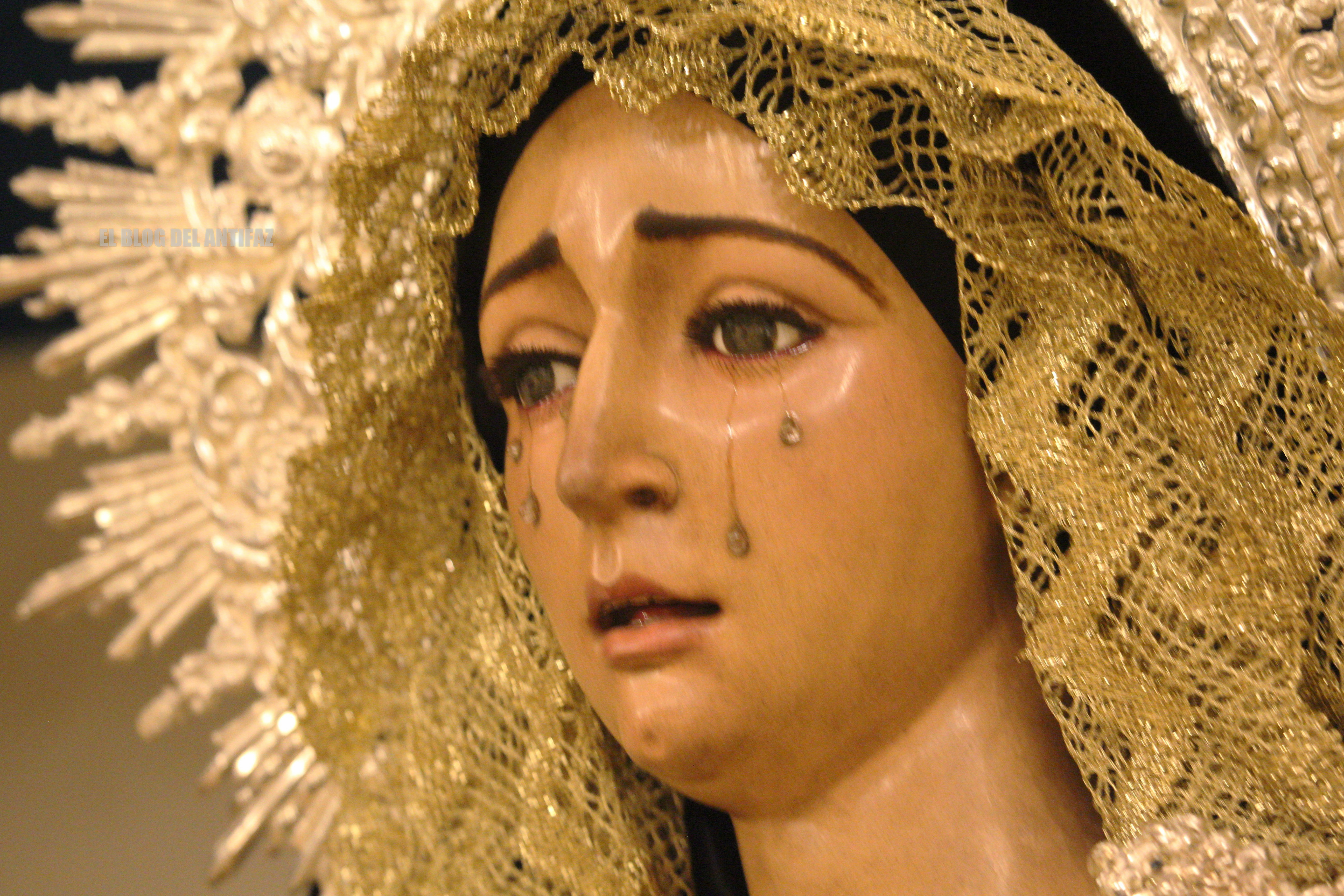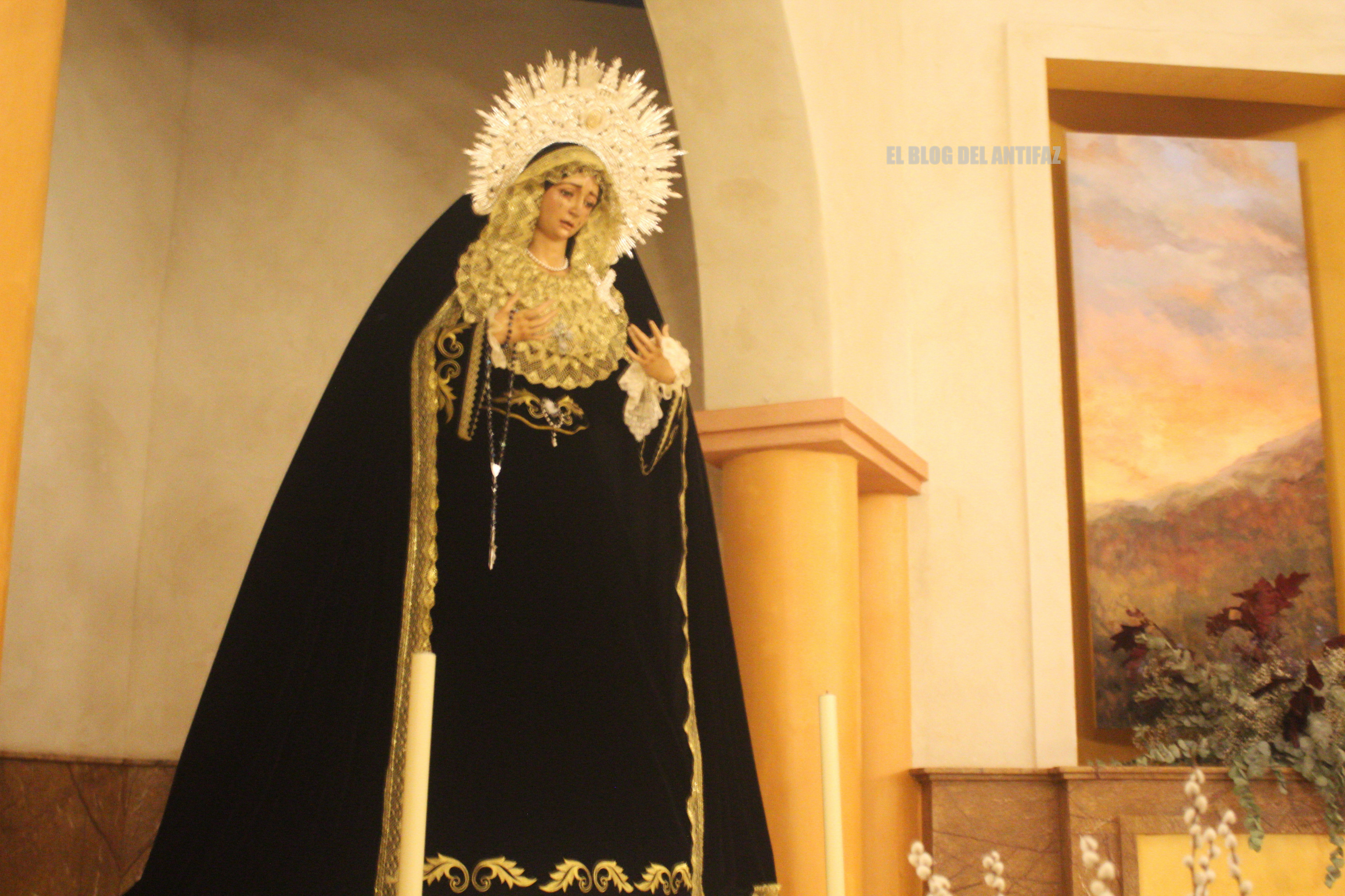 En el lado izquierdo podemos encontrar a Madre de Dios de los Ángeles. Una dolorosa tallada por Salvador Madroñal en 1992. Se da la circunstancia de que se trata de la primera dolorosa esculpida por el imaginero de Dos Hermanas. La hermandad la adquirió en 2014, actualmente no procesiona, pero existe ya un proyecto de paso de palio que será ejecutado por José Antonio Grande de León.