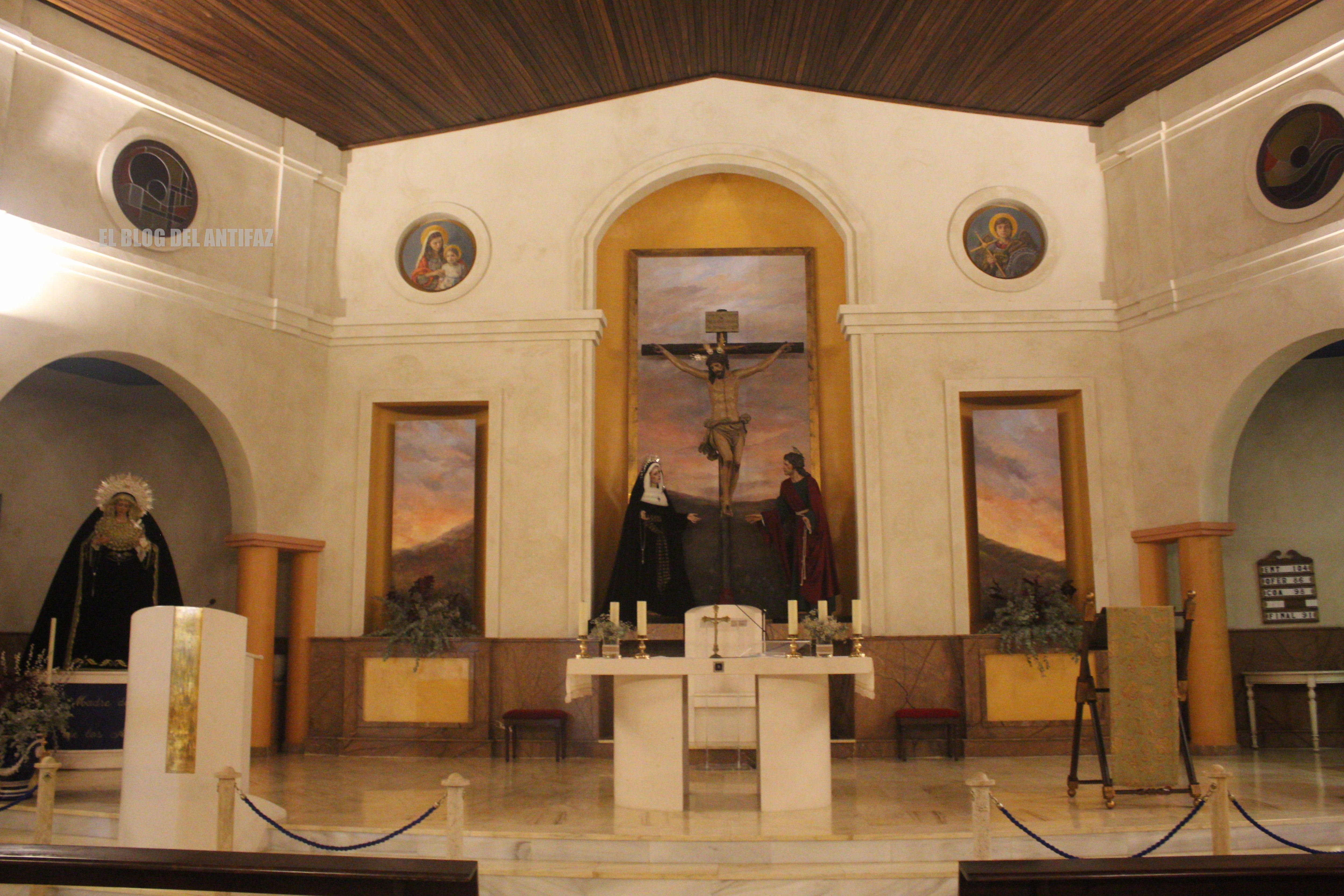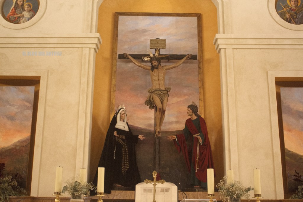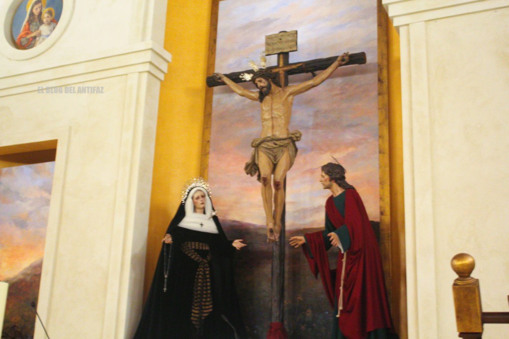 En la zona central del altar mayor se situa el calvario formado por el Santísimo Cristo de San Miguel, María Stma. de la Salud y San Juan Evangelista. Obras recientes, todas del escultor Darío Fernández. Siendo la hechura del Cristo en 2011 y la de las otras dos en 2016.