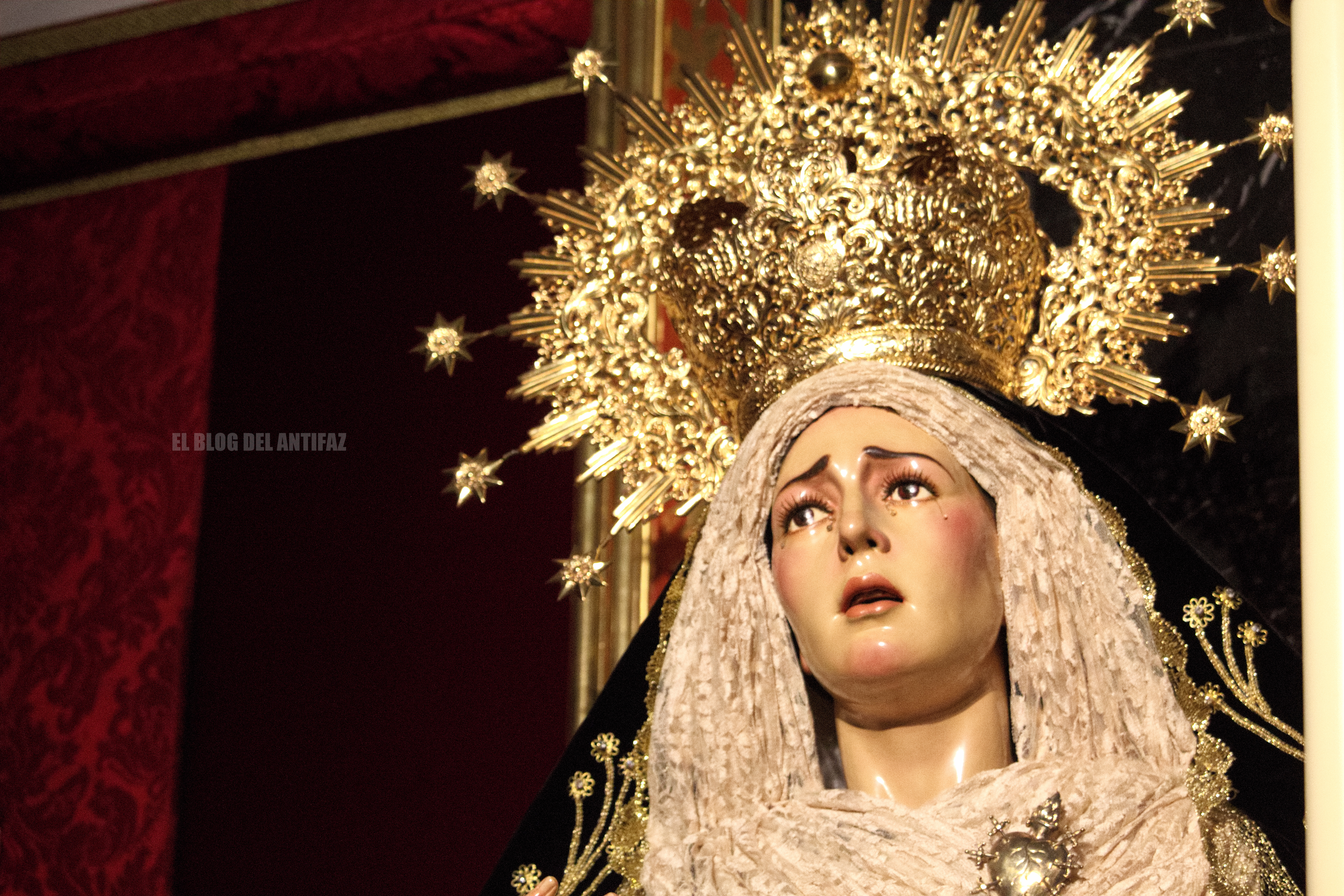 En la capilla del sagrario de la Parroquia de la Inmaculada Concepción reciben culto las imágenes de Nuestra Señora de las Angustias (Augusto Morilla Delgado, 1987) Stmo. Cristo del Perdón (Augusto Morilla Delgado, 1979) y San Juan Evangelista (Ventura Gómez, 2009) En este mes de noviembre, la dolorosa está expuesta vestida de luto.