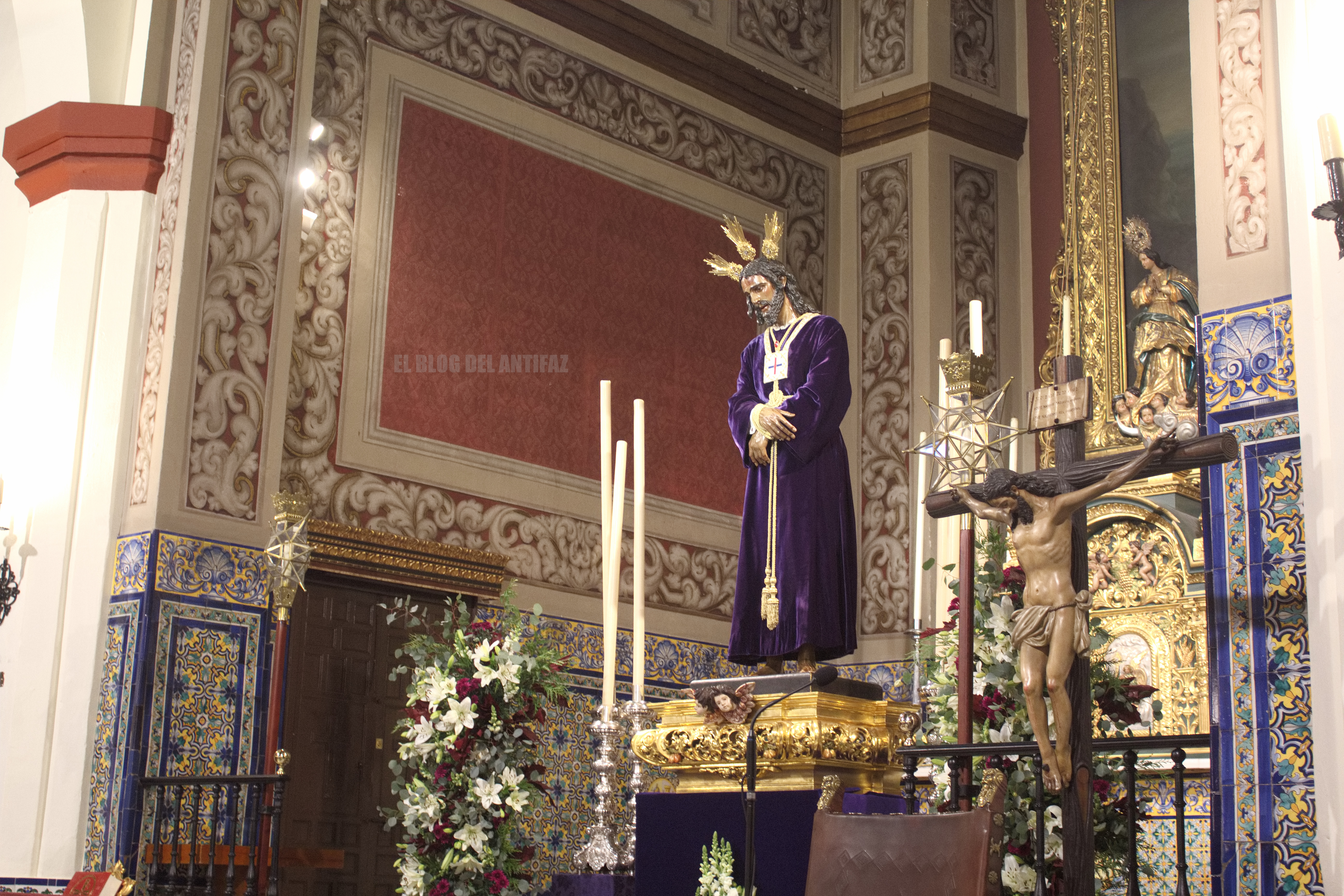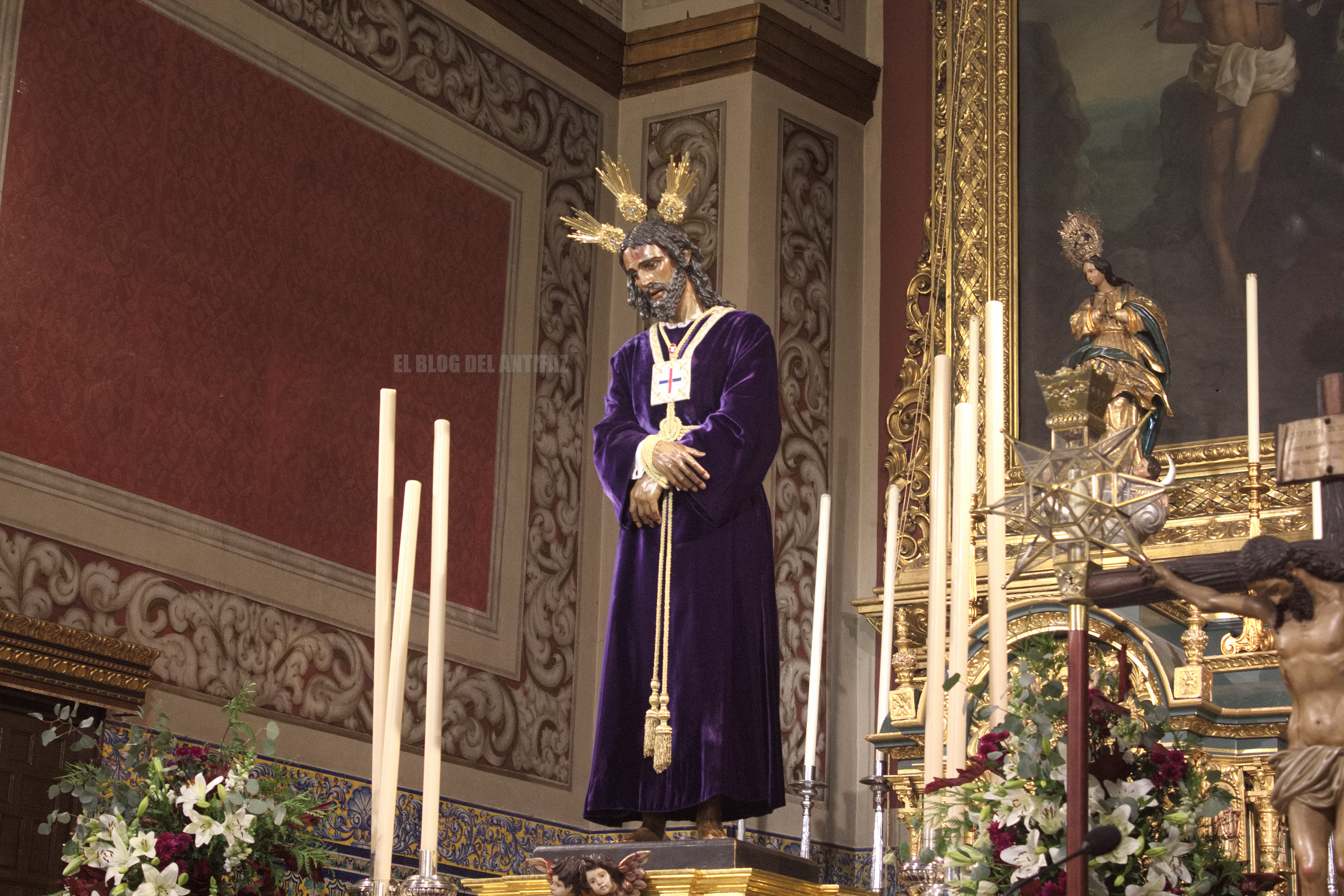 En el altar mayor de la Parroquia de San Sebastián pudimos ver expuesto a Ntro. Padre Jesús Cautivo y Rescatado (Manuel Pineda Calderón. 1955) que además, celebraba los días 23-24-25 su solemne triduo.