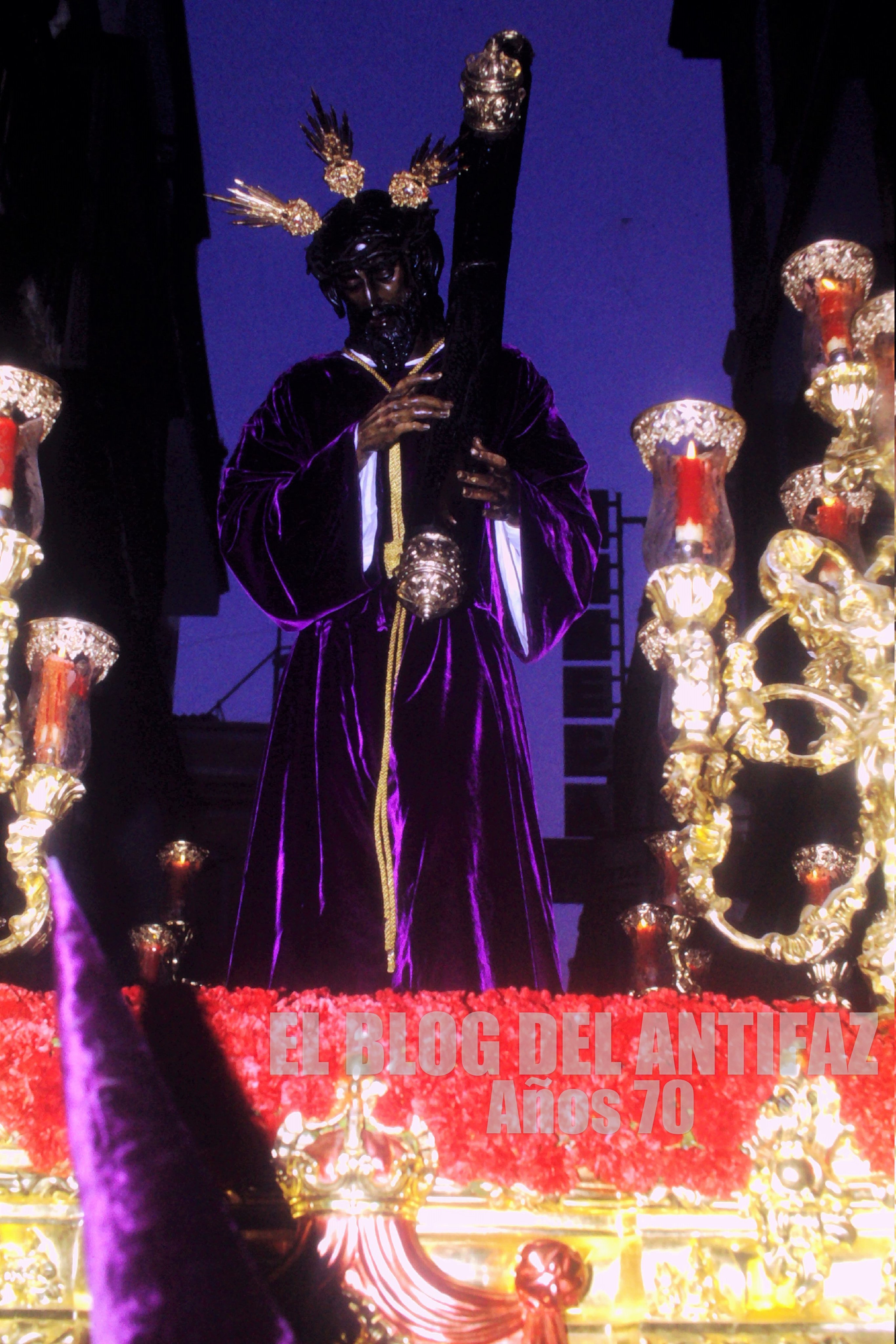 Gracias a muestro colaborador Juan Caravaca podemos ver estas imágenes de la Hermandad de los Gitanos a su paso por la calle Imagen. Llama la atención los candelabros del paso del Nazareno, y es que se trata de unas andas anteriores a las de la actualidad. Es por ello que podemos fechar las imágenes a finales de los 60. En 1978, el paso sobre el que procesiona el Señor de la Salud, fue vendido a la Hermandad del Confalón (Écija) para portar el misterio del Señor de la Columna y Azotes de la localidad astigitana.