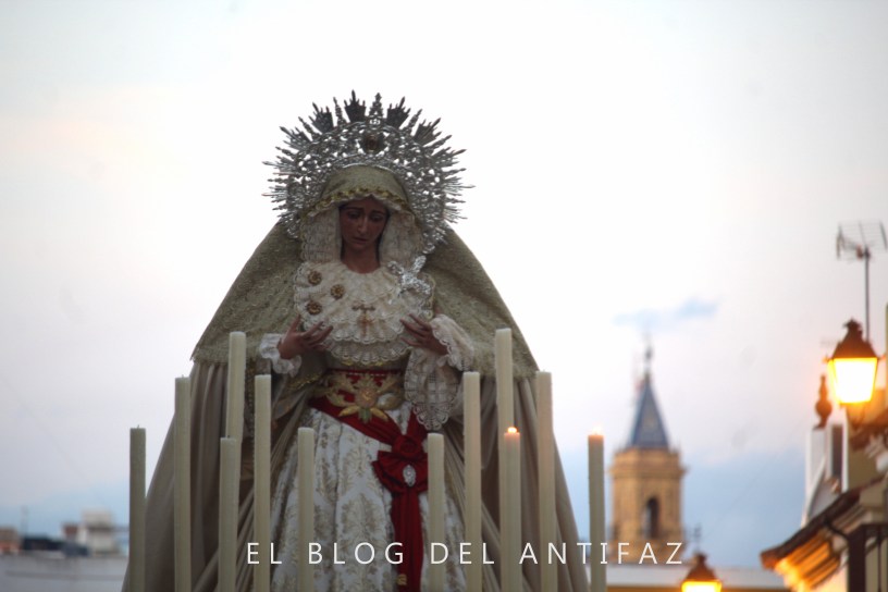 La primera imagen que tallara, un entonces joven, Salvador Madroñal fue portada en andas y el acompañamiento musical lo puso la Banda de Alcalá de Guadaíra. Estas son algunas de las imágenes que pudimos captar.