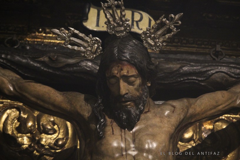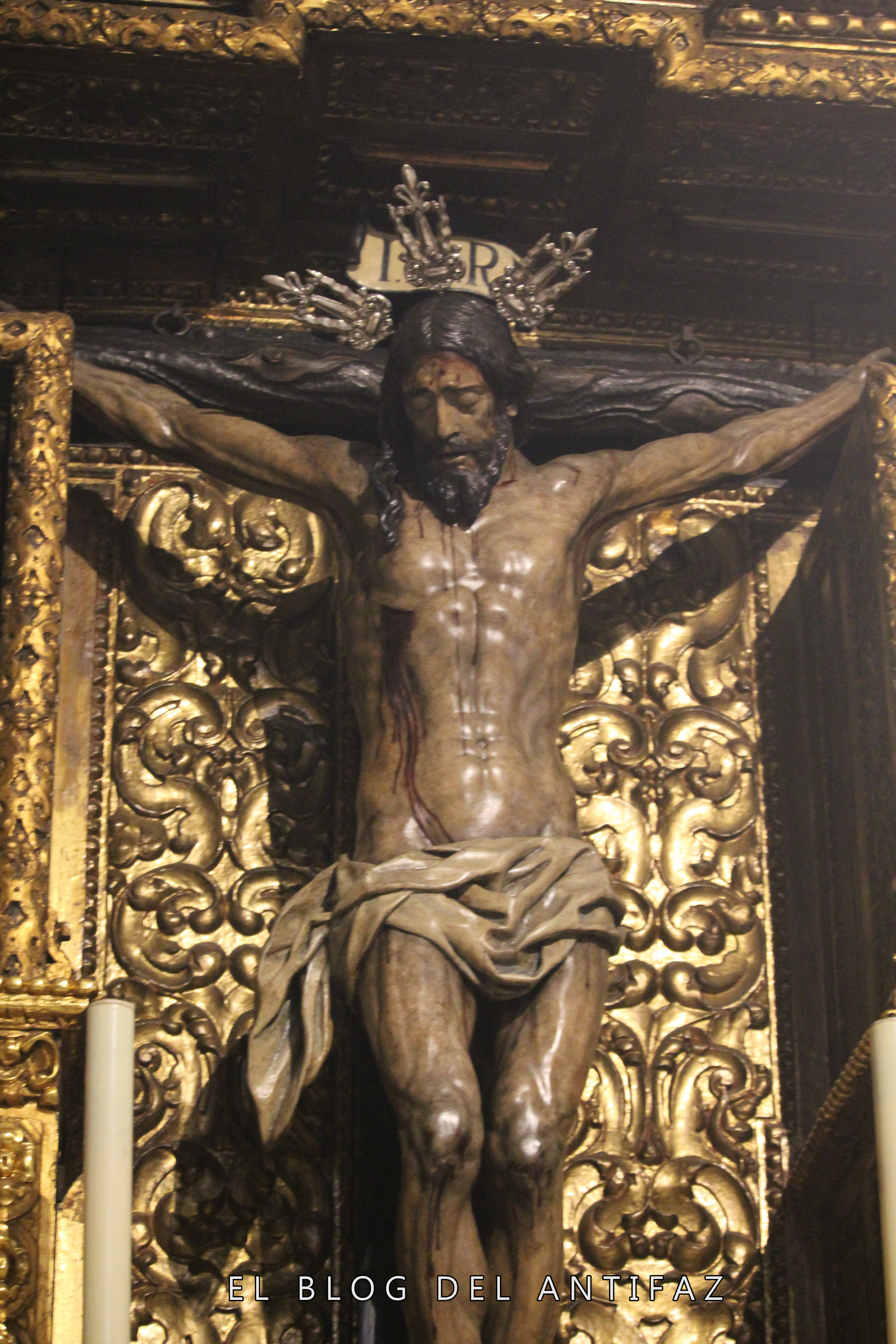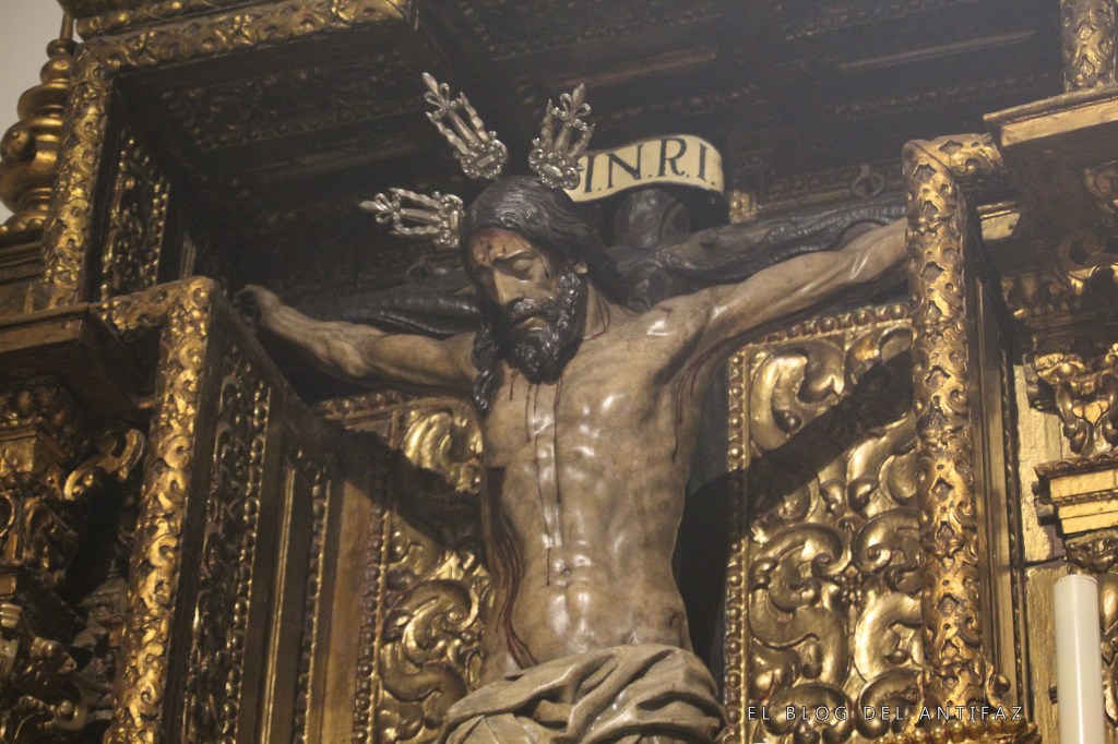 Seguramente, si a un cofrade le preguntasen por un crucificado que no procesiona en Semana Santa y que podemos encontrar en el interior de la Parroquia de San Lorenzo, se pensaría que le hablan del Cristo del Mayor Dolor de la Hdad. del Dulce Nombre.