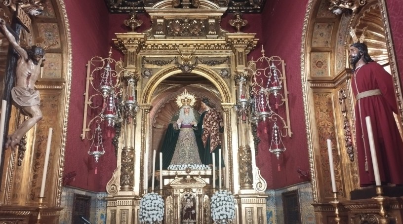 Así lucían las imágenes titulares de la Hdad. del Dulce Nombre , conocida popularmente por «La Bofetá» el pasado 18 de febrero en su capilla dentro de la Parroquia de San Lorenzo.