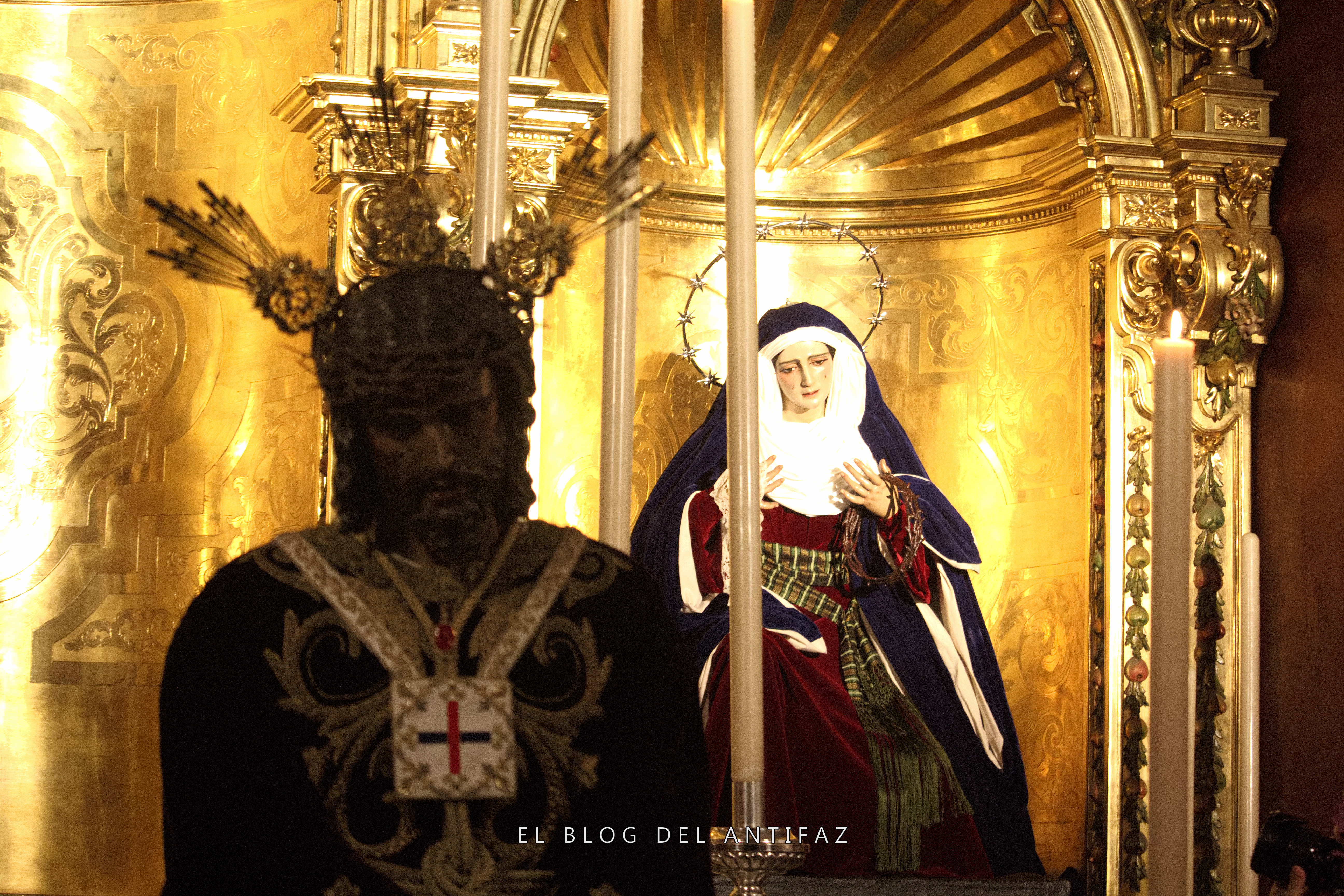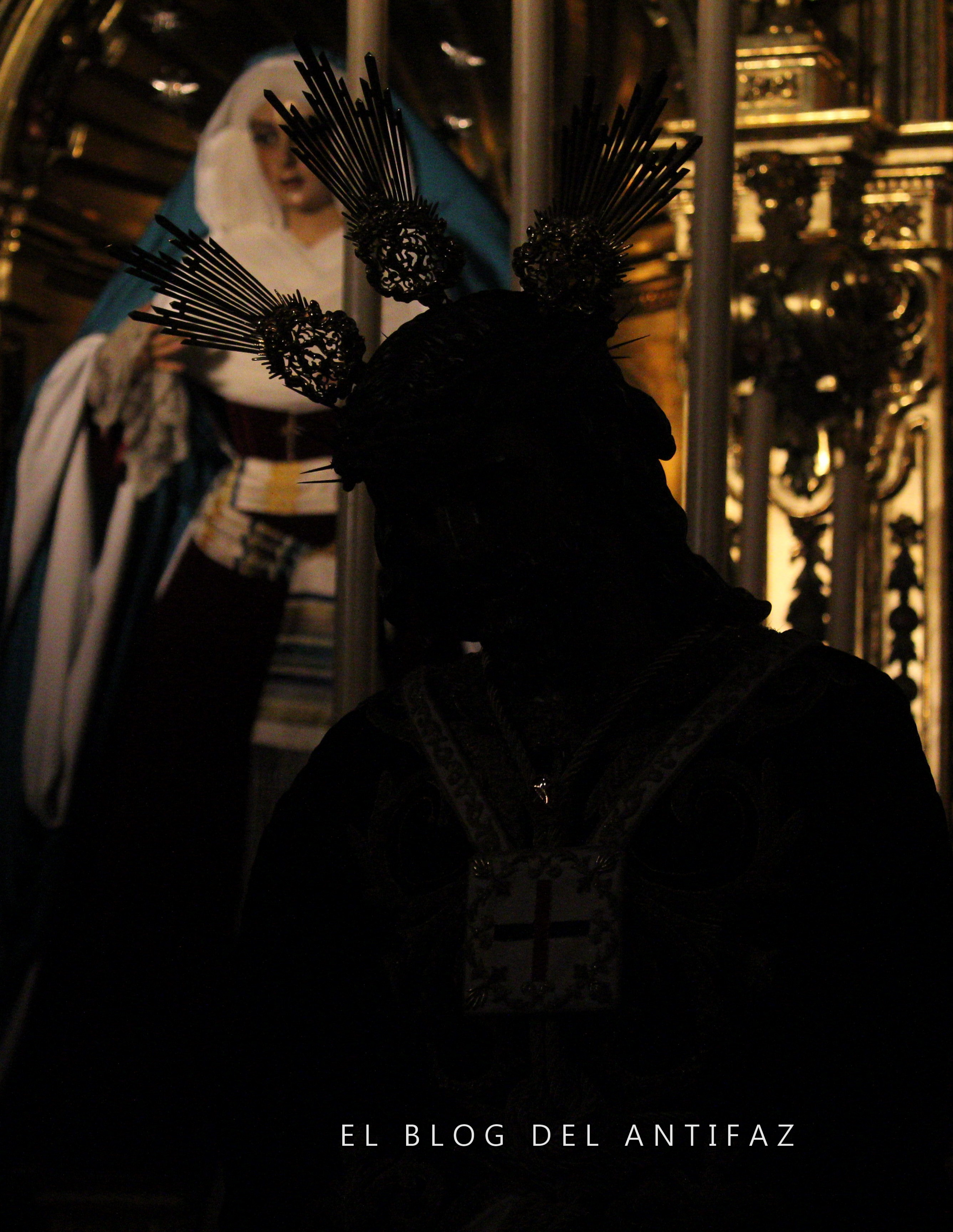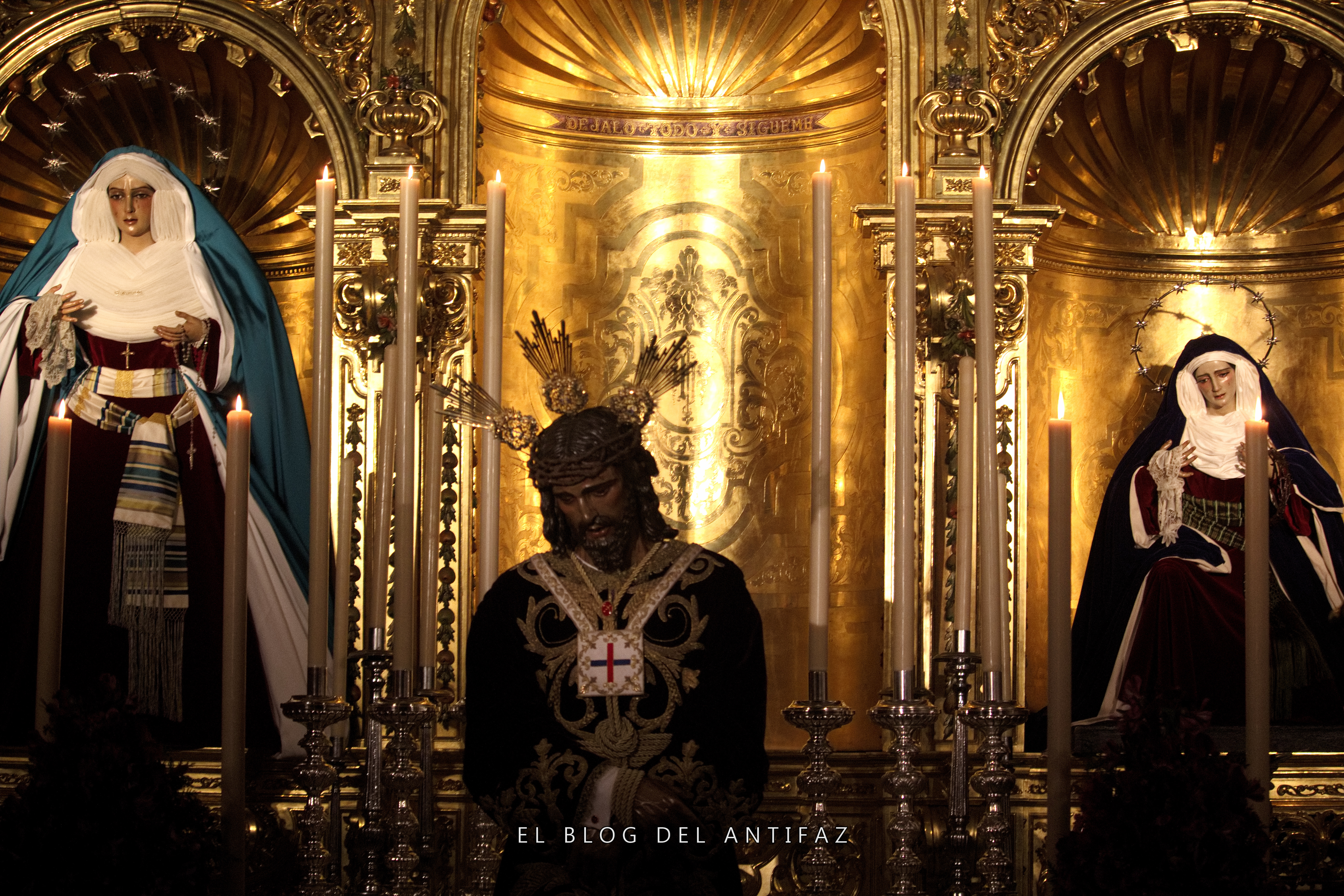 Vestido con la conocida como «túnica de los dragones» de Jesús de Medinaceli (Madrid) se presenta a Ntro. Padre Jesús Cautivo y Rescatado en Solemne Besamanos. Le acompañan en la capilla, y vestidas de hebrea, Ntra. Señora de la Esperanza y María Stma. de los Dolores.