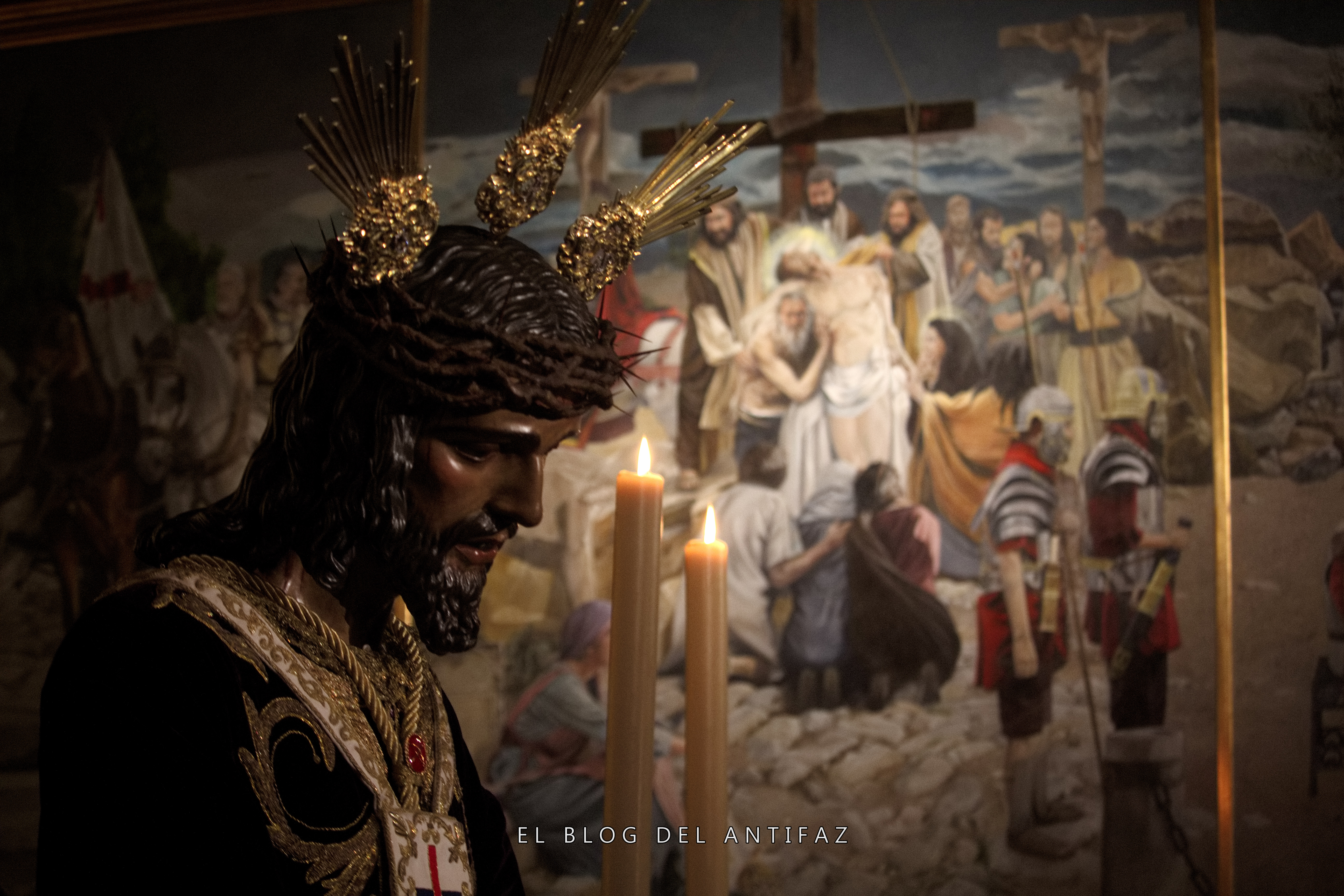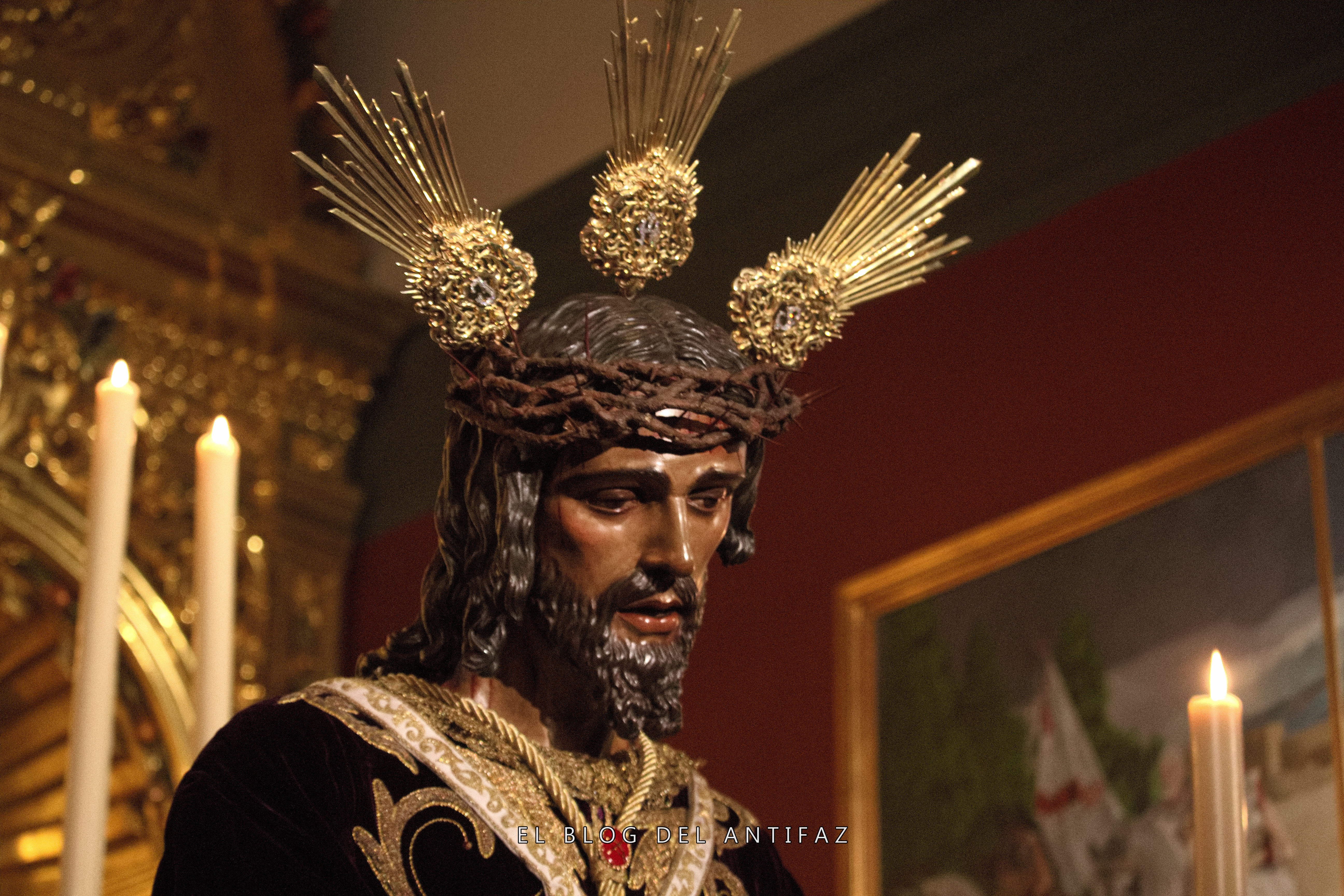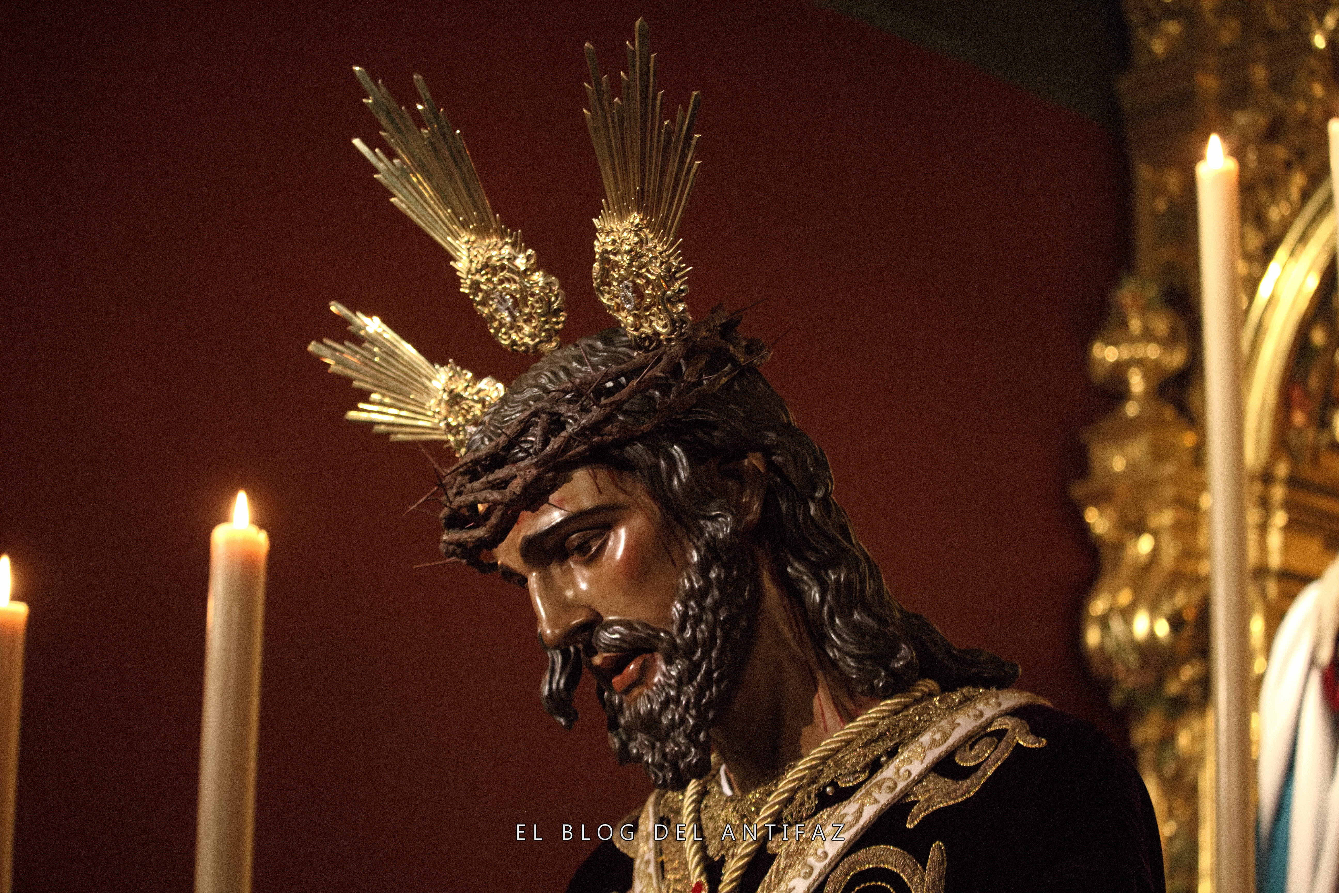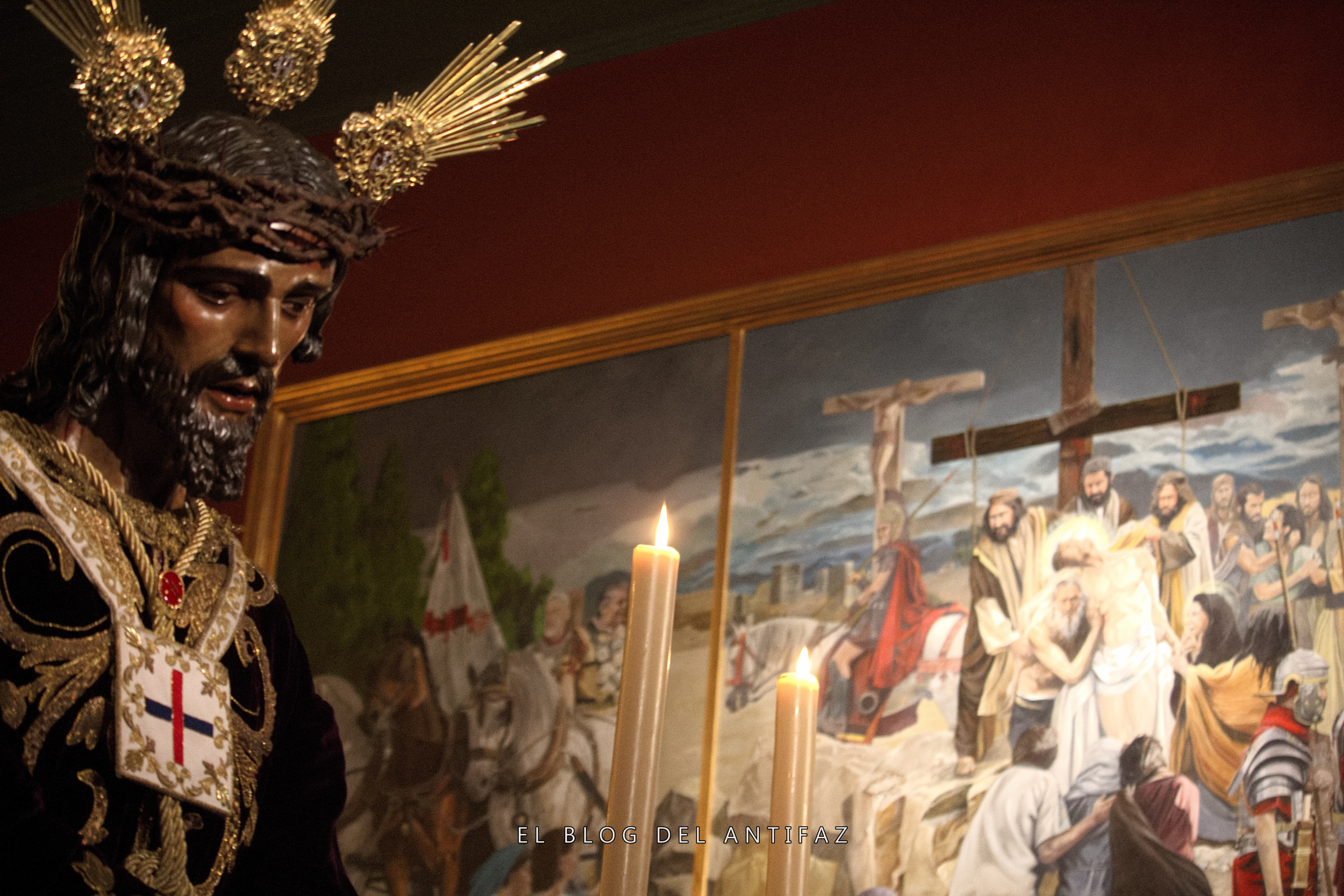Vestido con la conocida como «túnica de los dragones» de Jesús de Medinaceli (Madrid) se presenta a Ntro. Padre Jesús Cautivo y Rescatado en Solemne Besamanos. Le acompañan en la capilla, y vestidas de hebrea, Ntra. Señora de la Esperanza y María Stma. de los Dolores.