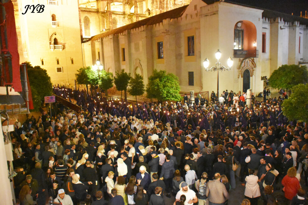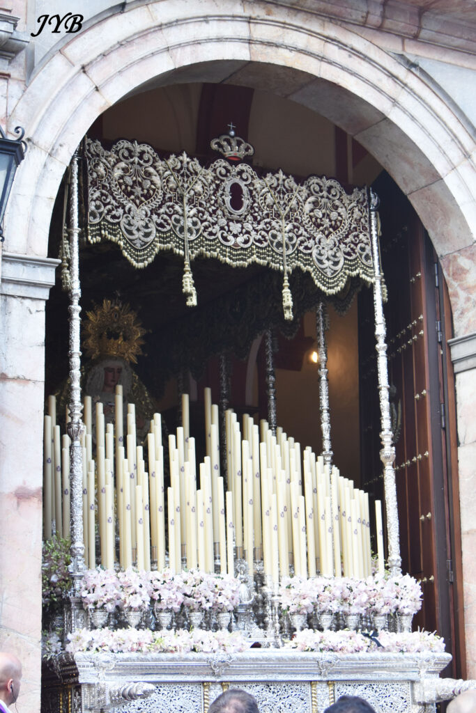 Jean-Yves es uno de esos casos excepcionales. No es que se pierda ni una Semana Santa pero sí que ha venido ya varias veces. La disfruta y la saborea a su manera. Si no dijo «Magnifique» 300 veces, no lo dijo ninguna, cautivado por sus flores, sonidos y silencios… mimetizándose con el público que le rodea. Un sevillano más, pero con acento.