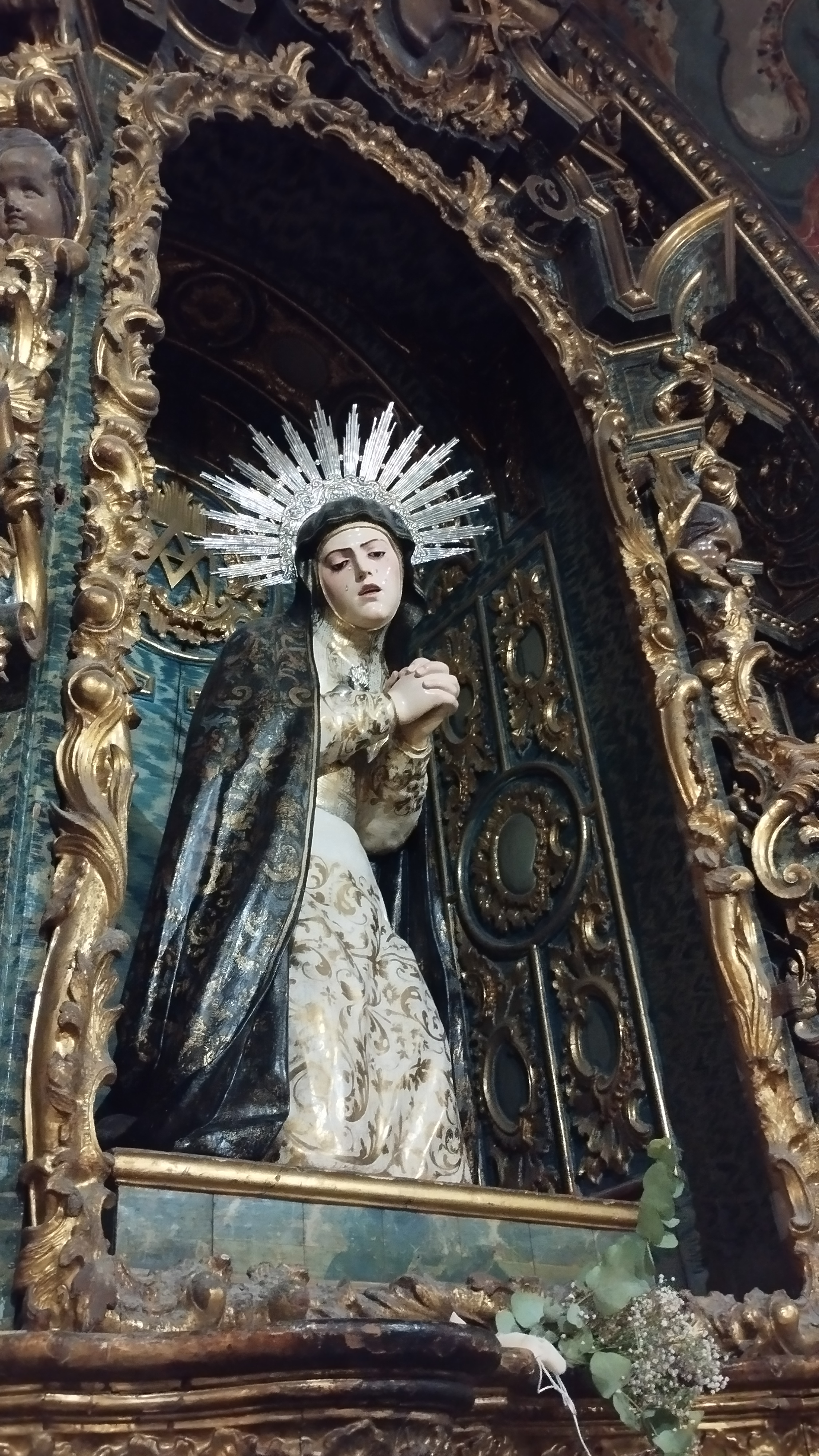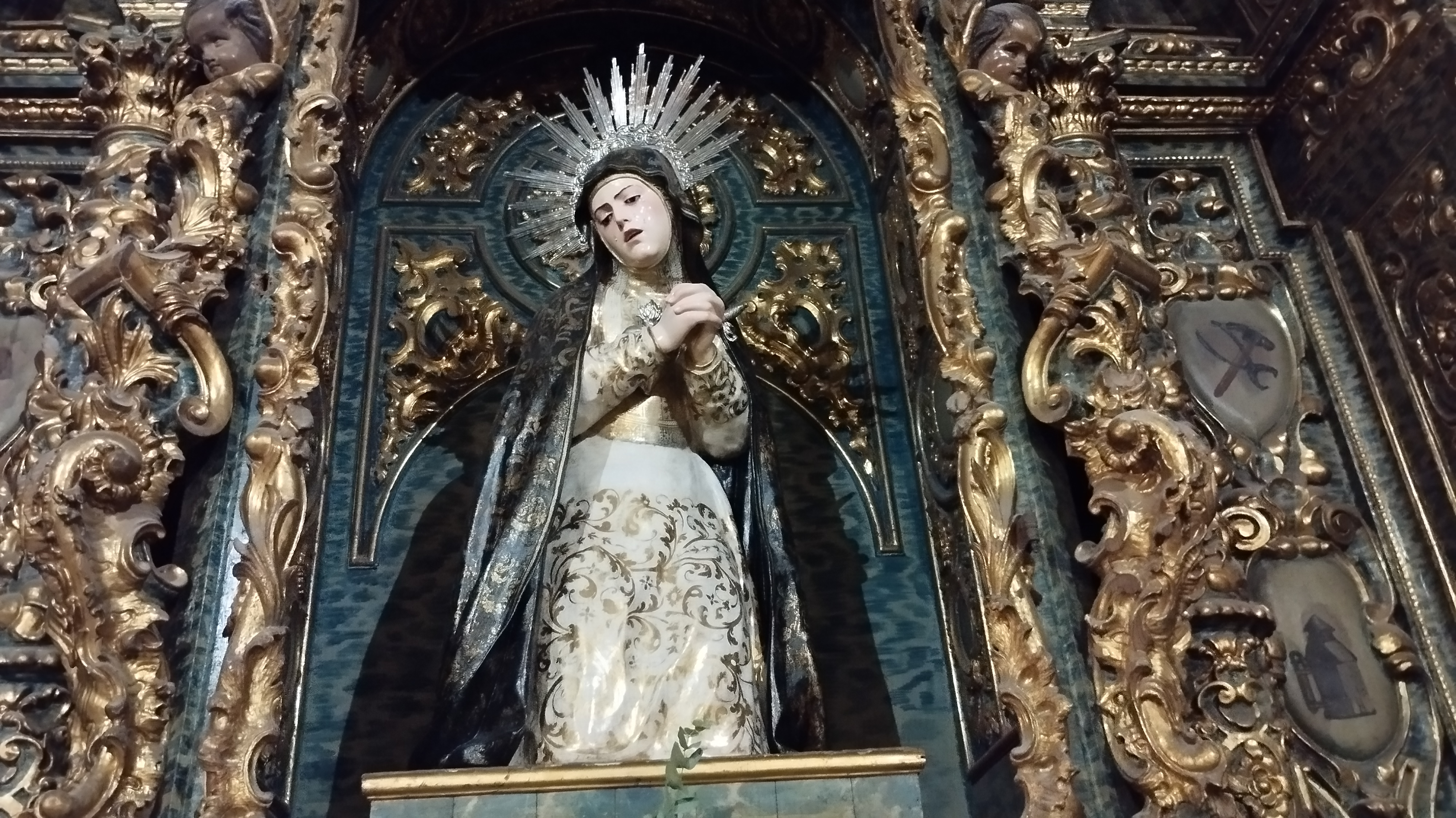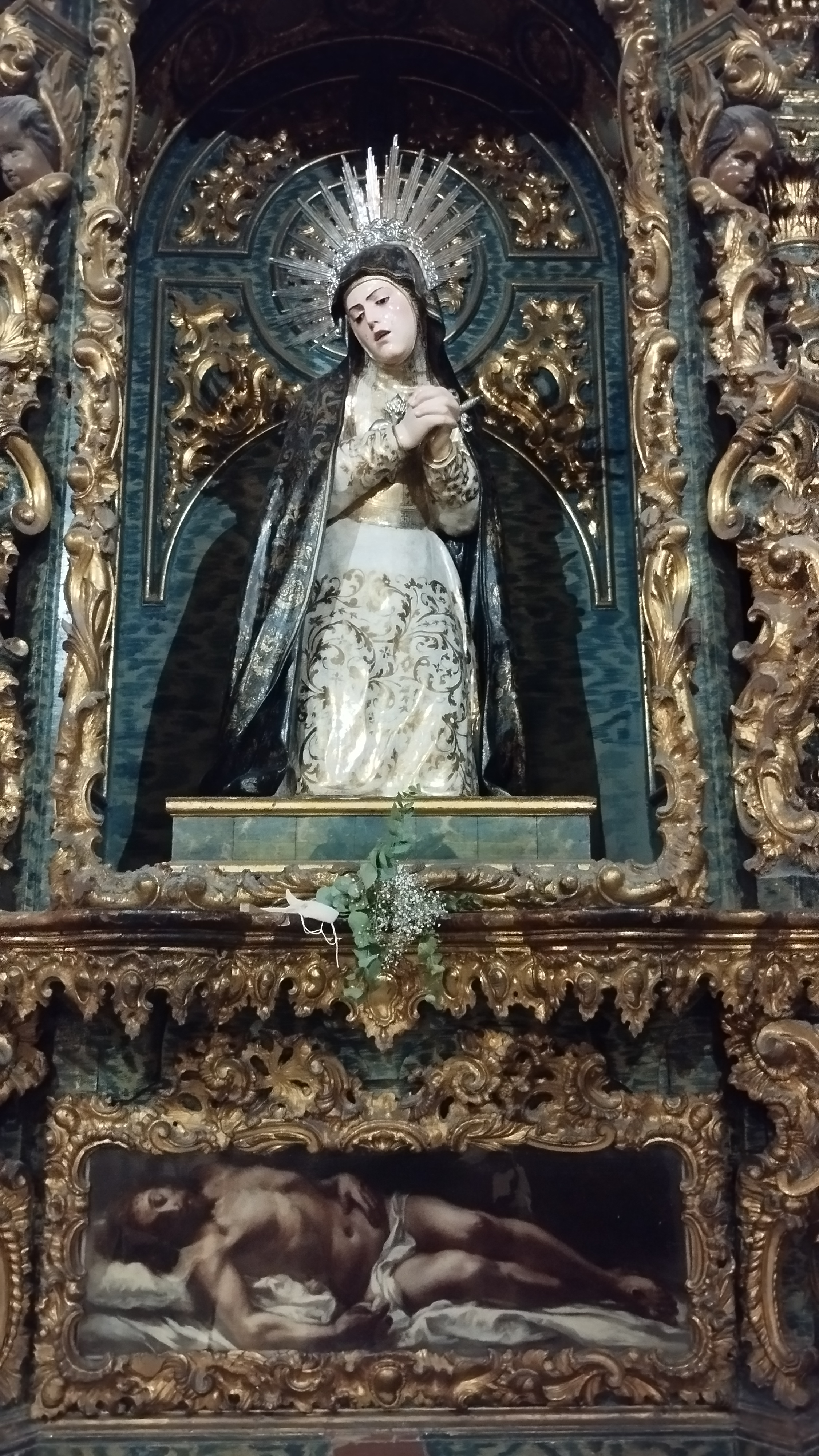 Situada en la segunda capilla de la nave de la epístola, se le rinde culto a Nuestra Señora del Mayor Dolor. Talla anónima que, gracias al grabado que existe en el antedespacho del párroco, podemos fechar sobre el s.XVIII. Su estilo (con muchas coincidencias con las escuelas granadina y castellana) nos hace no descartar la posibilidad de que la dolorosa fuese traída desde fuera de la ciudad de Sevilla.
