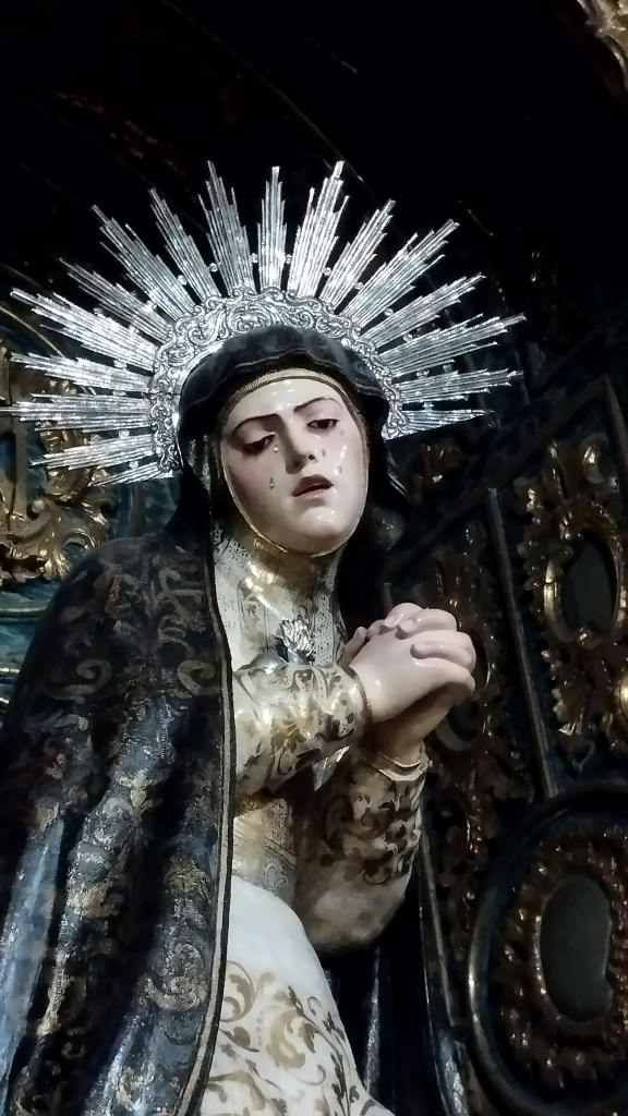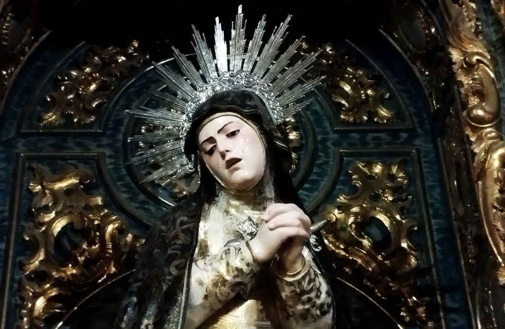 Situada en la segunda capilla de la nave de la epístola, se le rinde culto a Nuestra Señora del Mayor Dolor. Talla anónima que, gracias al grabado que existe en el antedespacho del párroco, podemos fechar sobre el s.XVIII. Su estilo (con muchas coincidencias con las escuelas granadina y castellana) nos hace no descartar la posibilidad de que la dolorosa fuese traída desde fuera de la ciudad de Sevilla.